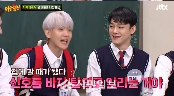 이날 멤버들은 서로에 대한 불만을 털어놓는 시간을 가졌다. 첸은 백현에게 "바지는 왜 벗는거냐"고 물어 웃음을 자아냈다.