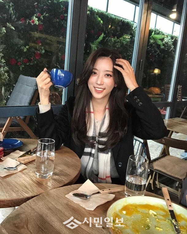 공개된 사진 속 오채이는 식당에서 파란 커피잔을 들고 포즈를 취하고 있는 모습으로 남심을 사로잡았다.