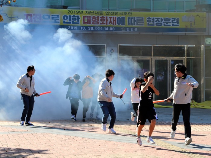한편 군은 이날 현장훈련에 앞서 오전 10시 군청 재난상황실에서 조근제 군수 주재로 13개 협업기능반과 유관기관 및 민간기업 등이 참석한 가운데 지진으로 인한 대형화재 발생 상황판단회의와 재난대책안전본부 운영 토론훈련을 실시했다.