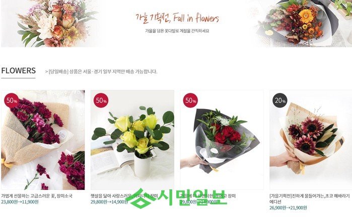 당일 배송되는 꽃 쇼핑몰이 눈길을 끌고 있다.