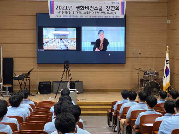 | ▲ 중학생 대상 비대면 화상강의 운영중인 김대중 평화상 기념관(출처=김대중 기념관) |