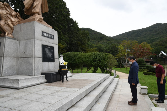 부산지방보훈청(청장 임성현)은 13일 오후 3시 부산진구 어린이대공원 내 박재혁 의사 동상 앞에서 참배를 실시했다고 밝혔다. 코로나19 확산으로 인해 9월 14일 박재혁 의사 부산경찰서 폭탄 투척 의거 101주년 기념행사가 취소됨에 따라 부산지방보훈청은 소수 인원만 참배하는 것으로 일정을 변경했다.