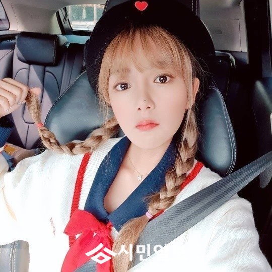 공개된 사진 속 강은비는 귀여운 의상을 입고 차안에서 포즈를 취하고 있다.