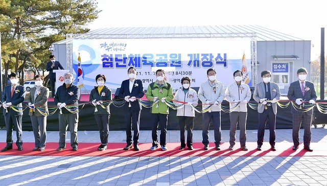 개장식에는 이용섭 시장과 김용집 시의회의장, 문인 북구청장, 김삼호 광산구청장을 비롯해 시의원 및 관련 생활체육단체 관계자, 인근 주민 등 50여 명이 참석해 생활체육의 요람으로 거듭난 첨단체육공원 개장을 축하했다.