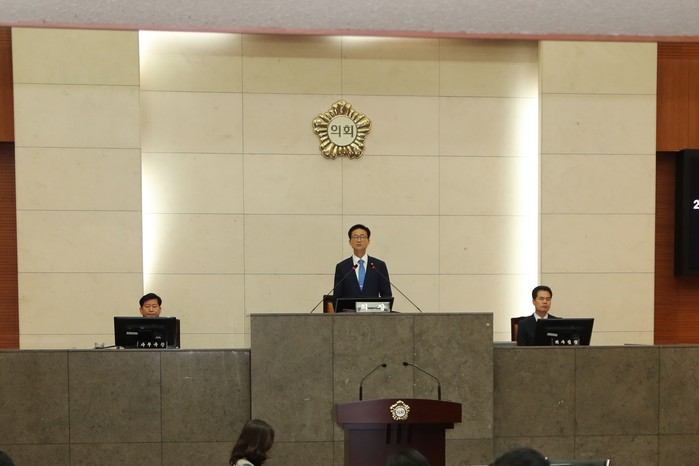 | ▲ 임시회 제2차 본회의에서 류명기 의장이 발언하고 있다. |
