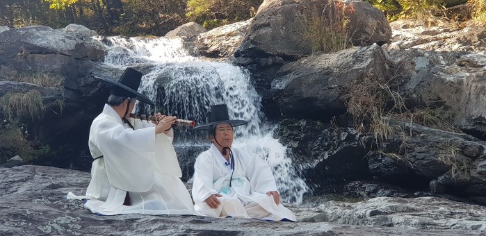 남명 조식 선생의 발자취가 깃든 산청군 단성면 백운계곡에서 한국 전통 정형시 ‘시조’를 주제로 한 다큐멘터리 영화가 촬영됐다.
