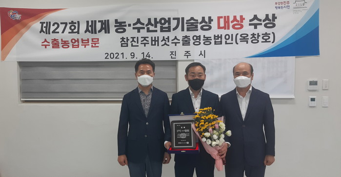 진주시는 참진주버섯수출영농법인(대표 옥창호)이 제27회 세계 농수산업기술상 시상에서 수출농업 부문 대상을 수상했다고 14일 밝혔다.