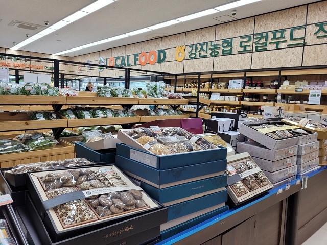 한편 강진 로컬푸드 직매장은 178㎡ 규모로 강진농협 파머스마켓 내에 샵인샵 형태로 설치되어 현재 335농가가 약정 출하해 650개 품목을 판매하고 있다. 운영시간은 매일 오전 9시부터 오후 10시까지다.