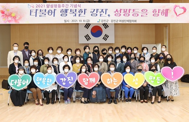 [강진=정찬남 기자] 전남 강진군은‘더불어 행복한 강진, 성평등을 향해’라는 슬로건으로 지난 8일 청소년수련관 대강당에서 2021년 강진군 양성평등주간 기념행사를 개최했다.