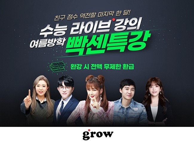 그로우 이혜영 대표는 “수험생들에게 가장 중요한 시기라고도 할 수 있는 여름방학을 맞아 수능에 집중할 수 있는 최적화된 맞춤형 강의를 준비했다”며 “대표 강사들의 실시간 라이브 강의와 함께 그로우만의 초밀착 학습관리를 비롯, 다양한 이벤트도 준비되어 있는 만큼 수험생들의 큰 호응을 기대한다”고 말했다.