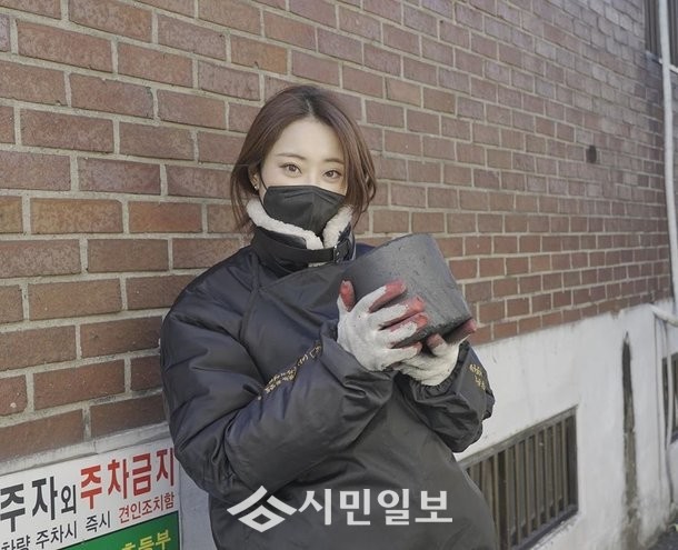 공개된 사진 속 경리는 마스크를 쓴 채 연탄을 들고있는 모습으로 훈훈함을 자아냈다.