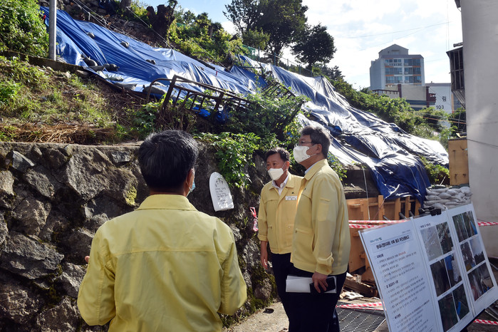 제9호 태풍 ‘마이삭’ 내습 시 재난을 대비하여 부산시(시장 권한대행 변성완)가 재해취약지역 현장을 방문 점검했다.