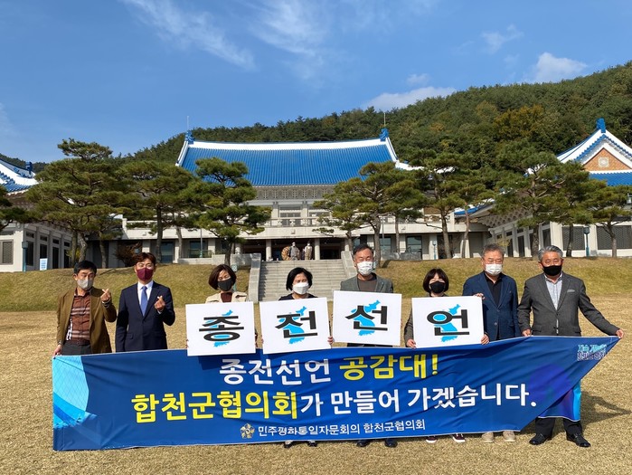 민주평화통일자문회의 합천군협의회(회장 김기태)는 2일 오후 1시 합천청와대세트장에서 민주평통 임원 8명이 모여 방역수칙을 준수한 가운데, 한반도의 종전선언과 평화를 위한 홍보활동을 펼쳤다.