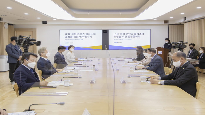 협약에 따라 양 기관은 ▲IP융·복합 산업 육성을 위한 중장기계획 수립 및 설립추진단 구성·운영 ▲IP융·복합 콘텐츠 선순환 생태계 성장 기반 IP콤플렉스 건립 및 운영 ▲IP융·복합 활성화 및 콘텐츠기업 성장 지원 프로그램 운영 ▲IP융·복합 콘텐츠 선순환 투자 환경 조성 ▲IP융·복합 파트너십 구성 및 글로벌 플랫폼 구축 등 대한민국 대표 콘텐츠IP 발굴·육성 플랫폼으로 자리 잡을 수 있도록 적극 협력하기로 했다.