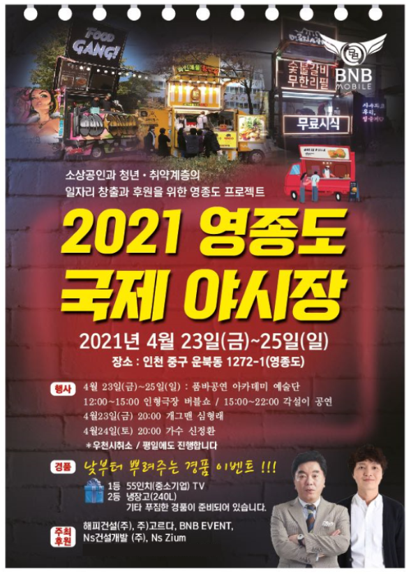 [시민일보 = 이승준] 주식회사 해피건설이 코로나19의 장기화로 인해 지친 소상공인과 청년 및 취약계층의 일자리 창출을 위한 방안으로 인천 영종도 야시장을 개장한다고 전했다.