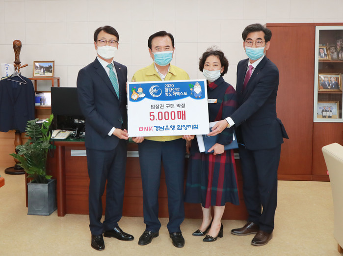 이에 서춘수 군수는 “우리지역 대표 금융인 BNK경남은행에서 코로나19 등 어려운 경제 여건에도 불구하고 입장권 구매 및 관람객 유치를 위해 적극 협력해 주신데 대하여 감사드린다”며 “엑스포 성공 개최를 통해 함양군이 한층 더 성장하고 도약할 수 있도록 최선을 다하겠다”라고 밝혔다.