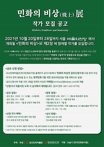 [강진=정찬남 기자] 전남 강진군 한국민화뮤지엄(관장 오석환)이 오는 24일까지“민화의 비상(Minhwa, Tradition and Modernity)”전에 참여할 작가를 모집하고 있다.