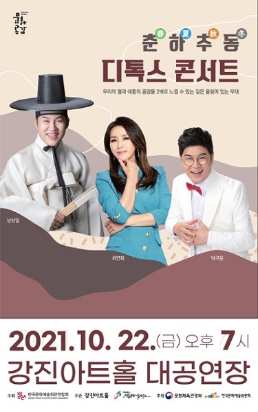 문화체육관광부가 ‘방방곡곡 문화 공감 프로그램’을 통해 후원하는 이번 공연은 21일 목요일부터 강진아트홀 매표소에서 초대권을 무료(1인 2매)로 배부한다.