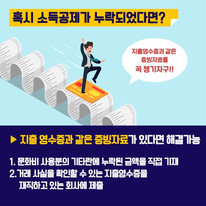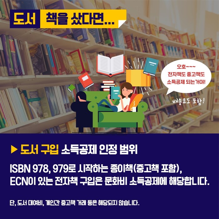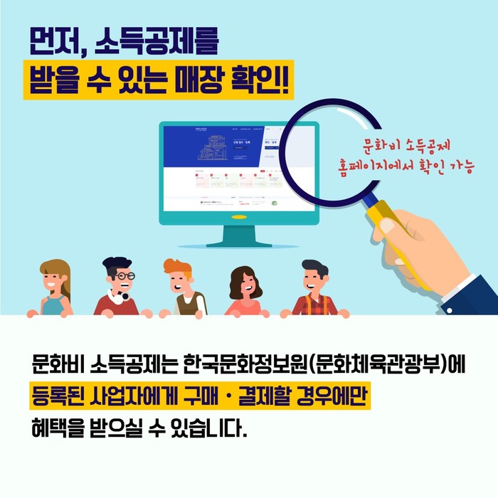 문화비 소득공제는 총 급여 7,000만 원 이하 근로소득자를 대상으로 도서구입비, 공연관람료 및 박물관·미술관 입장료에 대해 최대 100만원 이내에서 소득공제를 해주는 제도로, 문화비 소득공제 홈페이지에서 소득공제 제공 사업자를 확인할 수 있다.
