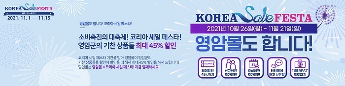 영암군 관계자는 “대한민국의 대표 쇼핑행사인 코리아세일페스타에 영암군이 동참하게 돼 매우 기쁘게 생각한다”며 “코로나19로 어려움을 겪는 농업인, 소상공인, 자영업자들의 판로개척과 지역경제에 활기를 불어넣는 계기가 될 것”으로 기대한다며 “코리아세일페스타 기간 우수한 영암의 농·특산물을 많이 구매해주실 것을 당부 드린다.”고 전했다.