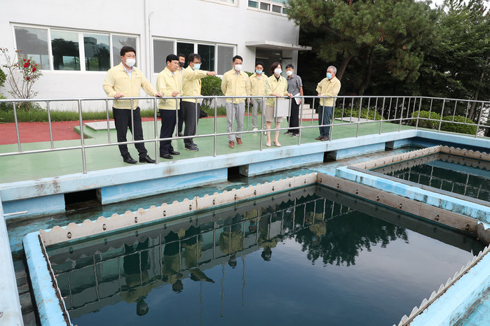 양산시의회 미래통합당 의원들은 물금 범어정수장에 유충이 발견됨에 따라 담당 시관계자와 함께 현장 점검을 통해서 재발 방지와 대책마련을 촉구했다.
