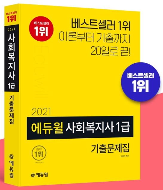 [시민일보 = 여영준 기자] 종합교육기업 에듀윌(대표 박명규)이 발간한 ‘2021 에듀윌 사회복지사 1급 기출문제집’이 온라인서점 예스24 사회복지사 부문 10월 2주차 베스트셀러 1위를 기록했다.