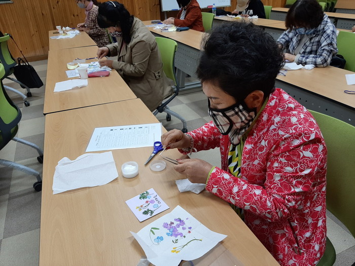 거창군은 여성농업인 17명을 대상으로 농업기술센터 교육장에서 압화(누름꽃)공예 교육을 실시하고 있다고 21일 밝혔다.
