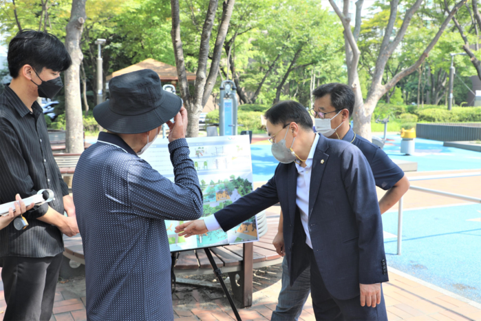 지역구 내 어린이 공원들이 대부분 노후화되어 아이들 놀이활동과 건강에 위험요소가 많다는 주민들의 걱정이 끊이지 않는다는 소식을 접하고 직접 현장을 찾았다.
