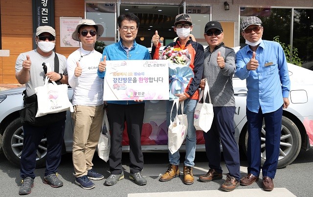 군은 관광택시 첫 손님인 김준연 씨에게 감사의 마음을 담아 강진군 관광기념품과 우리 지역 화훼농가에서 재배하는 장미 꽃다발을 전달했다.