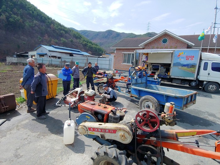 밀양시 관계자는 “찾아가는 농업 현장 서비스를 통해 오지마을의 원거리 이동수리로 인한 농업인의 불편을 해소하고, 농업기계 순회수리 및 현장이용기술 교육으로 안전사고 예방과 농가의 경영소득 증대를 위해 노력하겠다.”고 말했다.