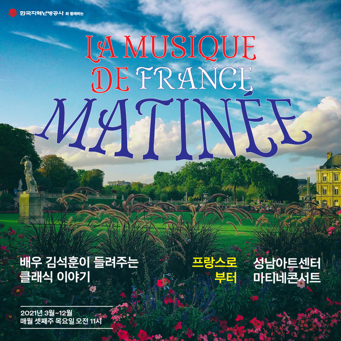 ‘2021 마티네 콘서트’는 ‘프랑스로부터’를 주제로 독창적이고 개성 있는 음악 문화를 만들어온 프랑스 음악의 유장한 흐름을 선보인다. 작곡가 륄리, 비제, 생상스, 베를리오즈 등 프랑스 음악가들의 작품뿐 아니라 프랑스의 지역, 역사, 문화 등과 관련한 다양하고 아름다운 프랑스 음악을 소개한다. 지난해까지 슈베르트, 베토벤 등 매년 한 명의 작곡가를 선정해 그들의 작품세계를 심층 탐구하는 시리즈로 호평을 받은 데 이어, 올해부터는 국가와 지역을 중심으로 새로운 프로그램 기획을 선보일 예정이다.