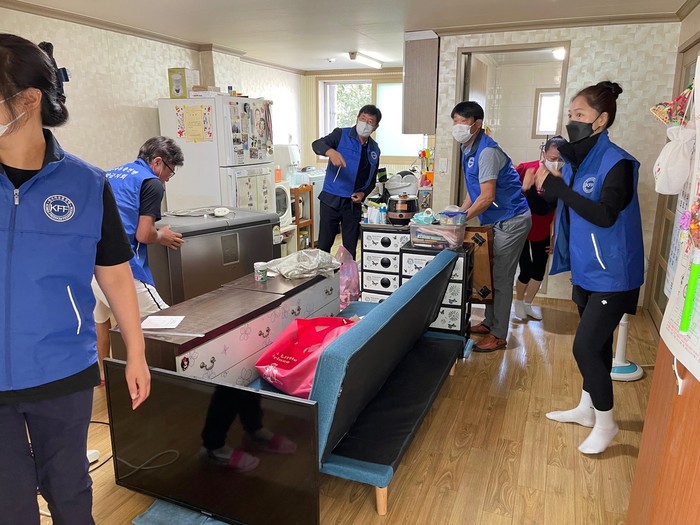 무더운 날씨 속에서도 군지회장을 비롯한 청년회 회원 10여명이 참여한 가운데 이뤄진 이날 활동에는 도배업을 하는 청년회 회원이 직접 자재를 제공하여 도배작업을 실시하였으며 이밖에도 가구 정리, 청소 등의 봉사활동을 진행하였다.
