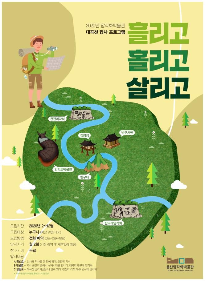 울산암각화박물관은 2020년 대곡천 답사 프로그램 ‘흘리고, 홀리고, 살리고’ 참가자를 모집한다고 밝혔다.