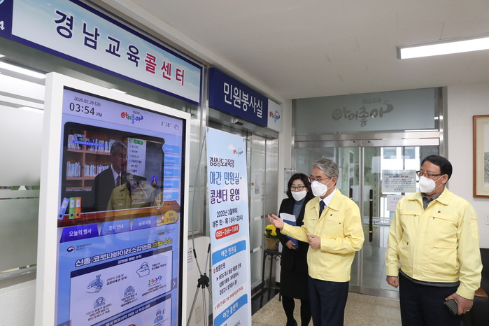 ‘야간민원실’과 ‘야간콜센터’ 운영을 앞두고 박종훈 경상남도교육감이 28일 오후 민원실을 찾아 추진상황을 점검했다.