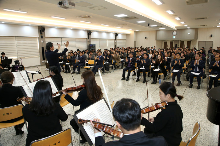 한편 시무식에 앞서 시립청소년교향악단(지휘자 홍성택)의 수준 높은 클래식 공연이 진행돼 직원들의 좋은 반응을 얻었다.