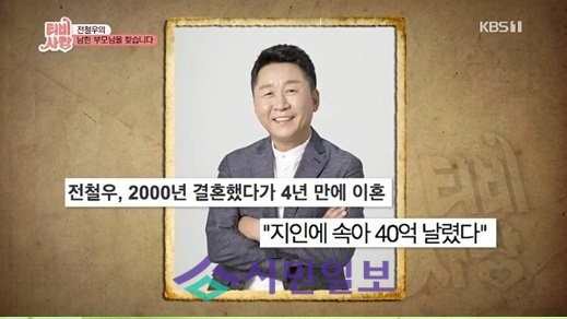 이후에는 냉면 가게까지 운영하며 바삐 살았지만 믿고 따랐던 동업자로부터 40억대의 사기를 당하며 사업실패를 겪기도 했다. 당시를 떠올리던 전철우는 "나가기 싫어서 집에서 술만 마셨다. 그러다 보면 집에서 막 떨어지고 싶더라. 계속 그렇게 지냈다. 어느 순간 북한 부모님, 남한 부모님이 생각났다"라며 '남한 부모님'에 대한 마음을 드러냈다.