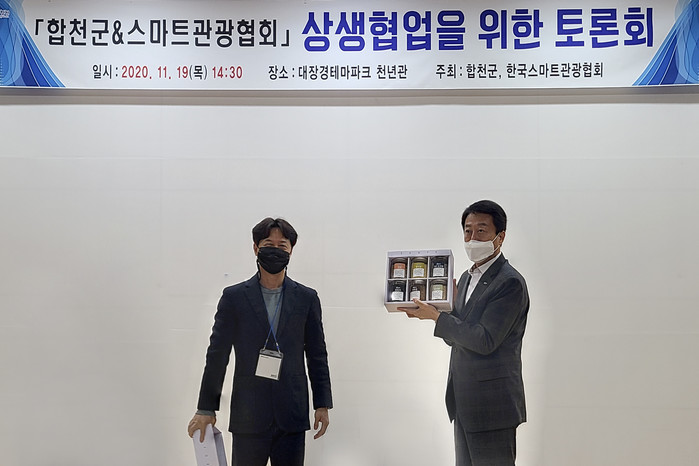 이영근 한국스마트관광협회장과 임채군 완주군 관광지원 센터장이 포스트 코로나 시대에 합천군 관광활성화 방안을 주제로 전문가 발표가 진행됐으며, 한국스마트관광협회 소속 회원사로부터 스마트관광, 플랫폼, 인트라바운드, 콘텐츠, 관광벤처 등 다양한 분야의 합천군의 관광발전 제안을 듣고, 참가자들과 자유롭게 발전방안에 대해 토론을 했다.