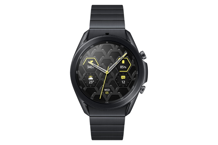 삼성전자에 따르면 '갤럭시 워치3' 티타늄 모델은 갤럭시 스마트워치 최초로 가벼우면서도 내구성이 뛰어난 티타늄 소재를 적용했으며, 길이 조절이 쉬운 프리미엄 메탈 스트랩을 적용한 것이 특징이다.
