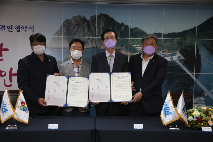 신안군(군수 박우량)은 지난 30일 철원군과 양군(郡) 발전 및 평화통일을 염원하는 동반자적 관계 구축을 위한 자매결연 협약을 체결했다.