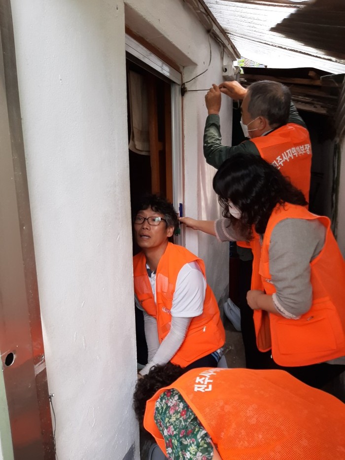 진주시 상평동 지역사회보장협의체(위원장 박길조)는 지난 2일 고령의 취약계층 8세대에 안전하고 쾌적한 거주환경 조성을 위하여 화재예방 타이머콕 및 방충망 설치 사업을 추진했다.