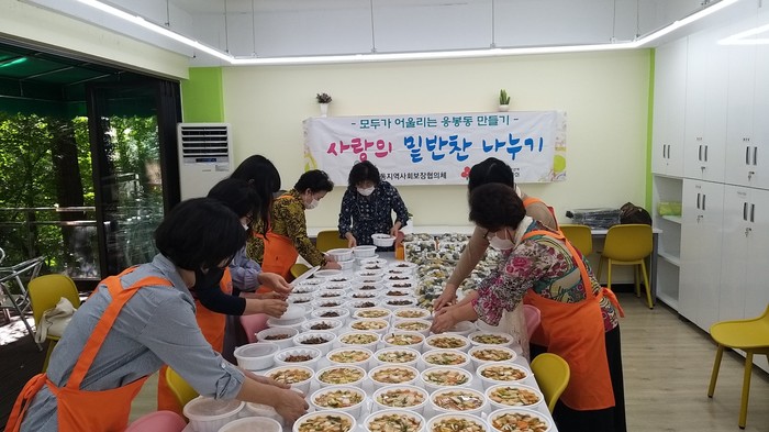 | ▲ 응봉동 ‘사랑의 밑반찬 나누기’ 준비 모습. (사진제공=성동구청) |