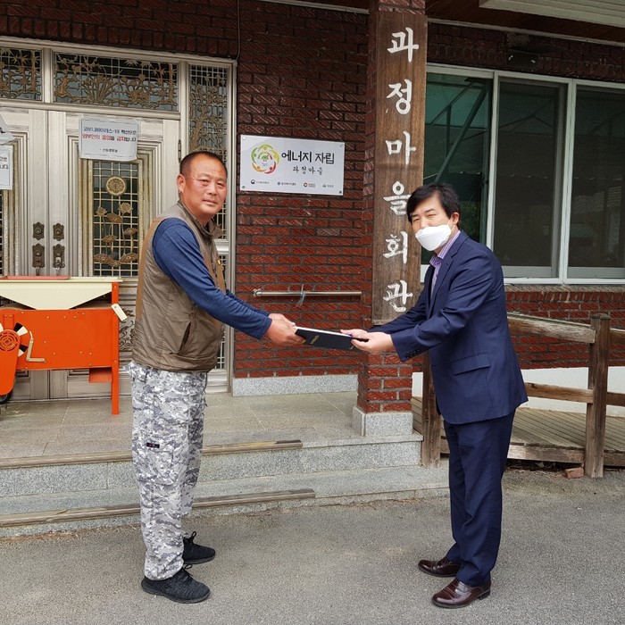 거창군은 산업통상자원부 주관으로 선정된 에너지 자립마을에 대한 자율인증제 인증서 및 현판 수여식을 신원면 과정마을에서 가졌다고 15일 밝혔다.