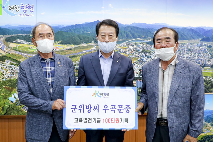 군위 방씨 우곡 문중의 방효혁 우곡이장 외 1명은 지난 25일 오전 (사)합천군교육발전위원회(이사장 문준희)를 방문하여 합천군 향토인재 육성에 써달라며 교육발전기금 100만원을 전달했다.