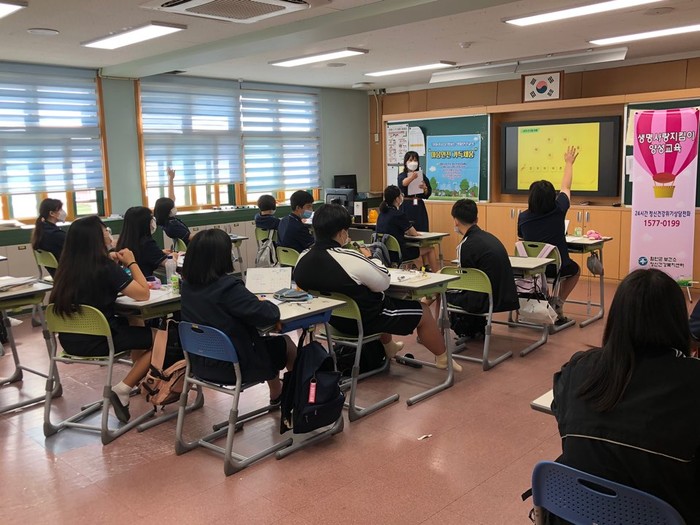 함안군보건소는 14일 대산중학교 전교생 40여명을 대상으로 마스크 착용 및 간격 유지 등 코로나19 방역수칙을 준수한 가운데 청소년 자살예방교육을 실시했다.