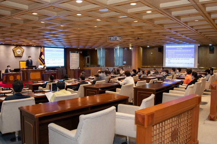 먼저 9일 열린 제1차 본회의에서는 도로 노면표시 시인성 강화 방안을 제안하는 전인수 의원의 5분발언을 시작으로 ▲2021년도 제3회 추가경정예산안 제출에 따른 구청장의 시정연설을 들었다.