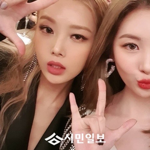 공개된 사진 속 선미는 행사장에서 만난 유빈과 셀카를 찍고 있다.