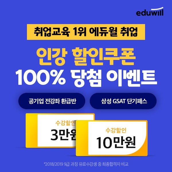 적용되는 과정에는 △공기업 전강좌 환급반 △대기업 전강좌 환급반 △2021 코레일 단기패스 △삼성 GSAT 단기패스 등 에듀윌 취업 인기 과정이 포함됐다는 게 회사 측의 설명이다.