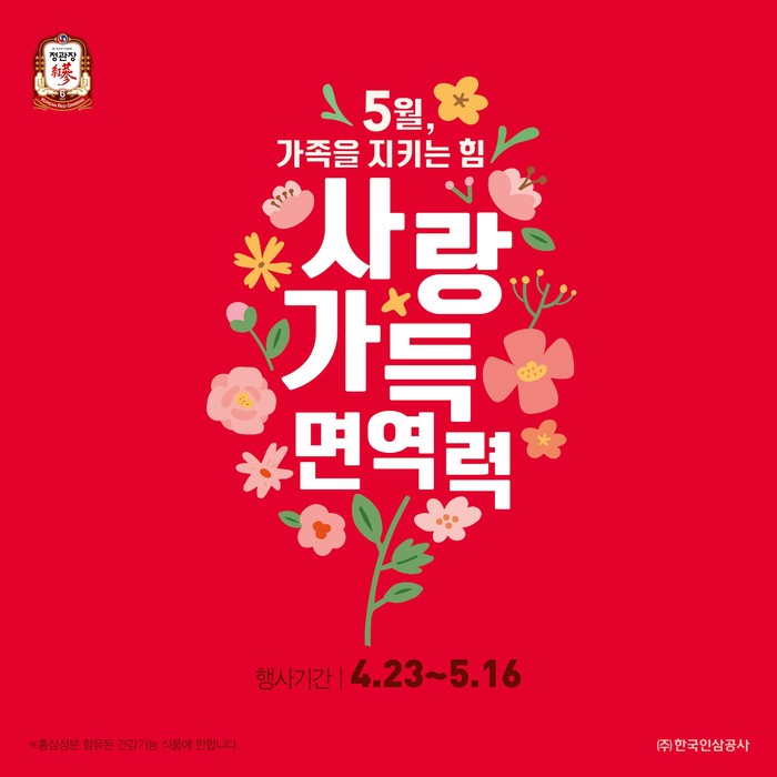 한편, 정관장 ‘가족을 지키는 힘, 사랑 가득 면역력’ 프로모션은 전국 정관장 로드샵, 백화점 및 대형마트, 정관장몰 등에서 진행한다.