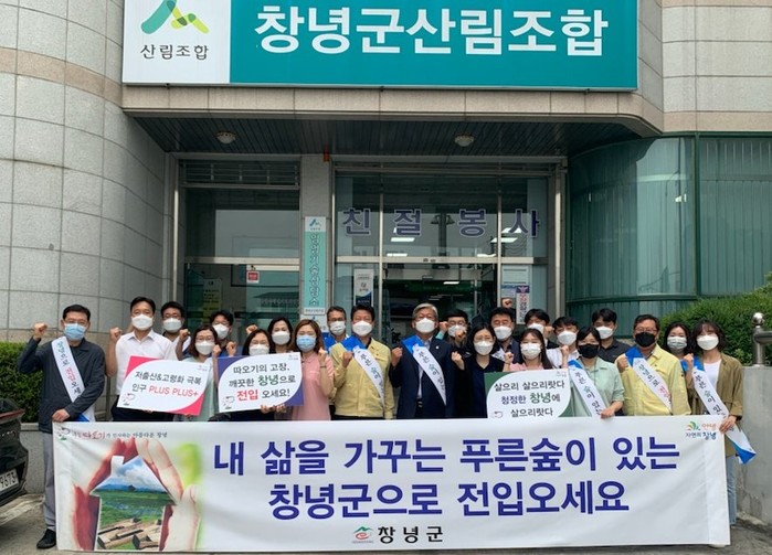 ‘내 삶을 가꾸는 푸른 숲이 있는 창녕군으로 전입오세요’라는 슬로건을 걸고 인구감소폭을 줄이고자 군 산림녹지과를 중심으로 창녕군산림조합과 고암면사무소와 민ㆍ관 협력해 릴레이 캠페인을 펼쳤다.