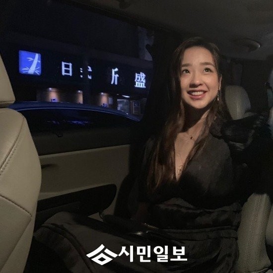 공개된 사진 속 손연재는 행사장으로 향하는 차량 내부에서 포즈를 취하고 있다.